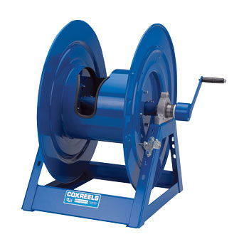 COXREELS® Storage hand crank and motorized reels have the featuresdemanded by industry professionals. These features include a CNC robotically heavy duty spun and ribbed discs with rolled edges for added strength, safety and durability and a sturdy all-welded "A" frame built to efficiently handle the most demanding storage tasks on either stationary or mobile units. These innovative models were selected from Coxreels standard series to handle long length of various materials including but not limited to hose, collapsible hose, powercord, cable, rope, wire, barbed wire, tape, and chain.