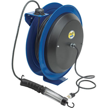 COXREELS EZ-PC24-0016-D - Safety Series Spring Rewind Power Cord Reel: Fluorescent Angle Light, 100' cord, 16 AWG.