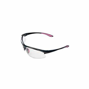 Universal fit with female flair that provides ANSI protection. 8 base cuve with dual lens, soft rubber nose pad, padded rubber temples for non-slip hold. Wrap around Nylon frame design. Meets the requirements of ANSI Z87.1 Impact.