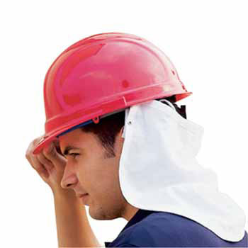 Conveniently loops around helmet suspension with metal grommets. Hangs freely to protect from sun and heat. Made of white 100% cotton fabric. Dimensions: 15" W x 11 1/2" L. Made in USA.