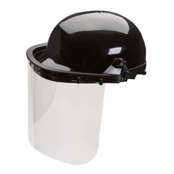ERB #901 Bump Cap. Model 8150 clear polycarbonate shield 8" x 15.5" x .040. E13 face shield carrier. Fully assembled with shield attached. Great for poultry and meat processing plants.