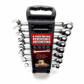 8-Piece Reversible-Ratcheting Combination Wrench Set (Metric) Includes 8mm; 10mm, 12mm, 13mm, 14mm, 15mm, 17mm, 19mm