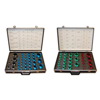 NPT/UN Thread Identification for male and female SAE threads includes: NPT/NPSM, O-Ring Face Seal, 37° JIC, Flareless, Straight Thread O-Ring, 45° Flare, Inverted Flare and Brass Compression. Kit includes carrying case, 45 anodized aluminum gauges sized from 1/8-27 to 2 ½-12 for Pipe and 5/16-24 to 2 ½-12 for UN/UNF 2A/2B threads, Thread and Port Guide book and a laminated NPT/UN Thread ID chart.