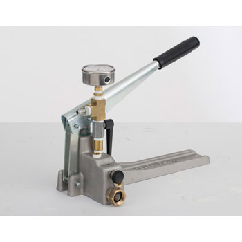 Manual test pump. Test lines up to 300 PSI. Includes 10-foot output hose.