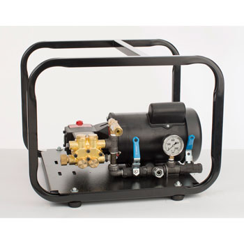 Triplex Plunger Electric Test Pump With Roll Cage. Triplex Plunger pump capable of testing lines up to 1000 PSI. Pumps 1 gallon of water per minute. Comes standard with full perimeter cage and 1 HP electric drive engine.