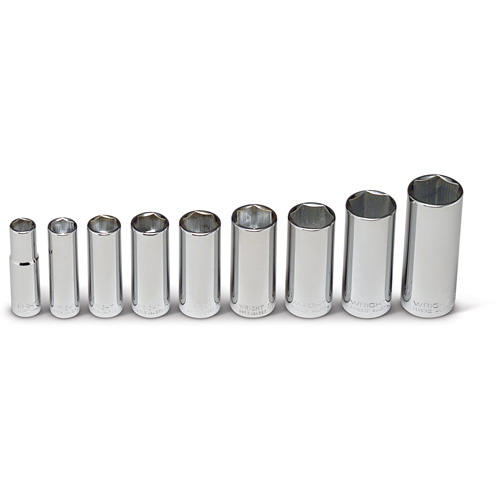 Wright 304 3/8 Drive 9 Piece 6 Point Deep Socket Set 3/8" - 7/8". Equivalent to Allen 19127, Armstrong 16-227, Proto J5006, Williams WSB-11H
