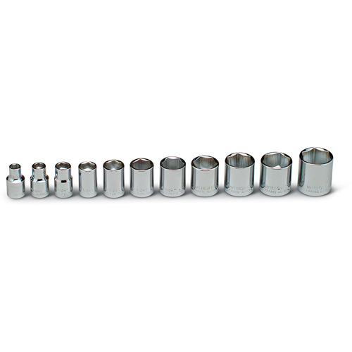 Wright 312 3/8 Drive 11 Piece 6 Point Standard Socket Set 1/4" - 7/8" . Equivalent to Allen 19126, Armstrong 15-360, Proto J52120, Snap-On 211FST, Williams WSB-10H