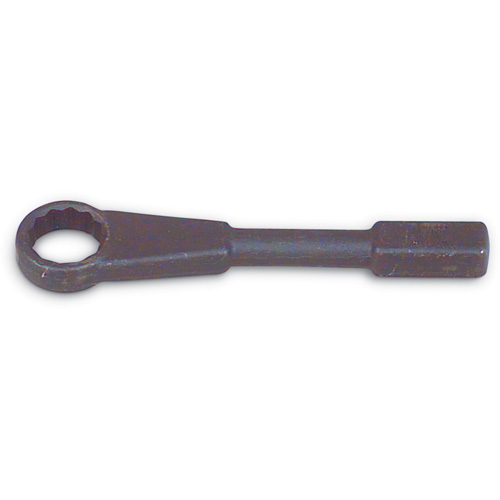 Special purpose single end straight pattern box wrench with 12 point opening at one end and striking face anvil at the other end.