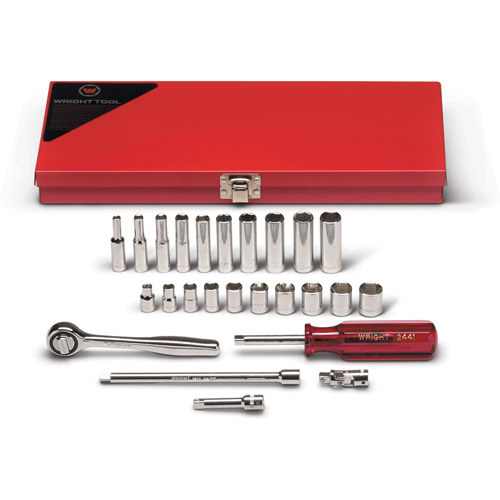 Wright Tool 224 1/4 Drive 25 Piece 6 Point Standard & Deep Metric Socket Set. Equivalent to Allen 19015, Armstrong 43-157